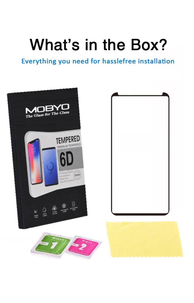 MOBYO Tempered glass screen protectors are the latest in state-of-the-art screen protection technology. With having High durability and scratch resistant/chip resistant properties, this strong 9H (hardness level) screen protector will protect your cell phone against drops, bumps, scratches and normal wear and tear. The Glass for Class- MOBYO tempered glass is 0.33mm thin, making it ultra-light weight to allow for a 'delicate touch' style screen protector that promises not to interfere with the sensitivity of your touch screen. To top it all off, the MOBYO screen protectors are designed to be 99.99% transparent to promote an optimal, natural, crystal clear viewing experience.